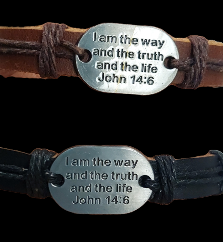 Bold leather band with metal bible plate verse. Each bracelet is individually wrapped. Perfect teacher gift or reminder bracelet for your teen.