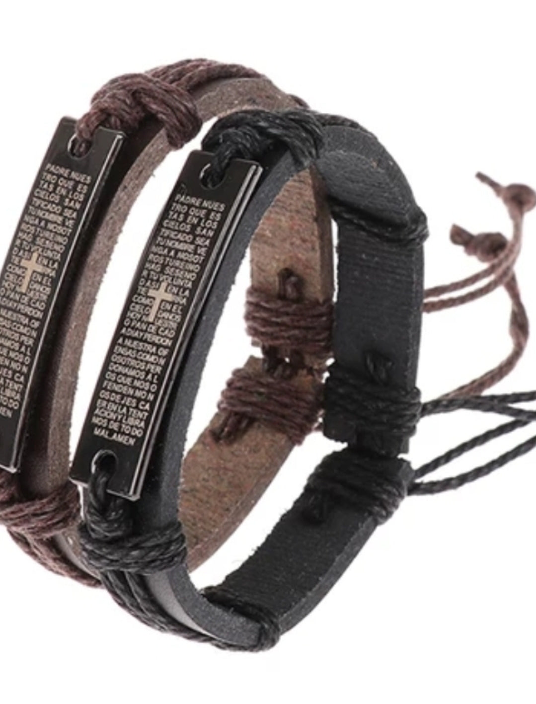 Leather bracelet with metal plate bible verse