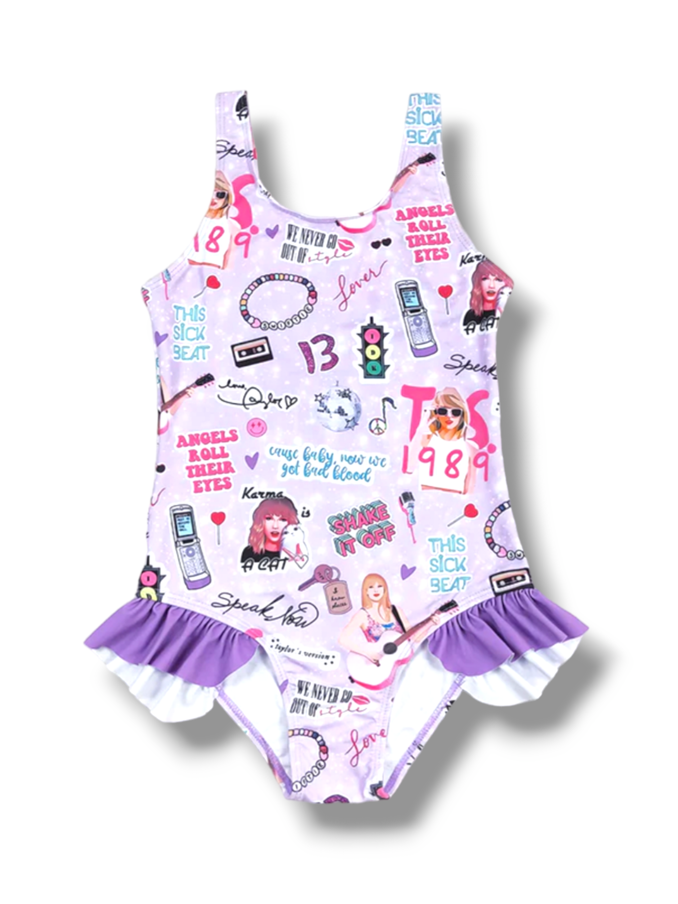 The SWIFT shake it off swim is a stylish swimsuit for girls designed with inspiration from music icon Taylor Swift. Made with high-quality materials, this swimsuit provides comfort and durability while making a statement. Perfect for young music lovers, this suit will have them shaking off the beach sand and swim waves all day long.